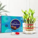 Deliver happiness by gifting this 2 Tier Bamboo Plant N Cadbury Celebrations Pack along with free Roli Tika n Chawal to your dearest brother on the occasion of Bhai Dooj.