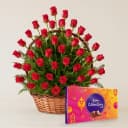 50 Red Roses Arrangement with Assorted Cadburys Chocolate.