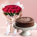 This gift combo has: - 12 Red Roses Bunch - Chocolate Cake (2.2 Lb) Bring smile to your loved one s face by sending 12 Red Roses bunch with Chocolate Cake 2.2 Lbs.