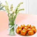 Akhrot Barfi from Mithas Delicious Sweets with Rajanigandha Stems in Glass Vase
