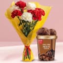 Amazing Assorted Carnations Bouquet with Chocolate Ice-Cream from Kwality Walls