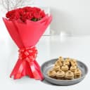 Shop Online for 10pc Amrita Kumbha from K.C.Das with 12pcs Red Carnation Tissue Wrapped Bouquet N send it to your family N friends. (Only Available at Kolkata)