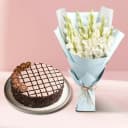 This gift set has: - 10pc White Gladiolus Bouquet - Chocolate Cake (1 Lb) Present your loved ones this Amusing 10pc White Gladiolus Bouquet with 1 Lb Chocolate Cake and let them taste the real flavour of your love.