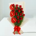 Convey your heartfelt wishes by gifting this Amusing 12 Red Roses N 3 Red Anthurium Bouquet Wrapped in Tissue to the people dearest to you.