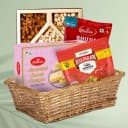Add an unforgettable charm to your celebration with the aid of Delicacies in a Basket decked beautifully in the auspicious presence. The Basket is loaded with Assorted Dry Fruits (200 gms), Haldiram Assorted Sweets (200 gms), Haldiram Bhujia (150 gms) and Haldiram Mini Samosa (200 gms). There might be a slight change in the displayed design of Basket.