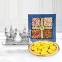 Greet your mummy on Mothers Day with this gift of Appealing Silver Plated Ganesh Lakshmi Idol with Dry Fruits (250 gr) N Haldirams Kesaria Peda (500 gr) for always being kind and humble with a big heart in nature.