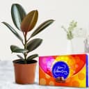 Adorn the bond between you and your mummy with this Arresting Rubber Plant N Chocolate Gift Combo that will make it lovelier on this Mothers Day. This Green Air Purifying Rubber Plant comes in a Plastic Pot along with Assorted Cadbury Celebration Pack of 126 gr. Details: Plant Type - Indoor - Air Purifying Plant Size - 3 to 7 inch Pot Size - 3 to 4 inch.