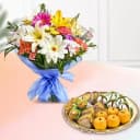 Assorted Dry Fruit Sweets from Adyar Ananda Bhawan with Seasonal Flower Bouquet