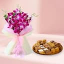 Assorted Sweets from G Pulla Reddy with Orchid Bouquet