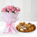 Sending Assorted Sweets (250 gms) from G Pulla Reddy with 10 Pink Rose Bouquet to your near ones. (Only Available at Hyderabad)