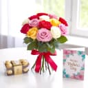 Add spark to your moms life by presenting this Mothers Day gift of Attractive 12 Mixed Roses Bunch with 16 pcs Ferrero Rocher Chocolates Box and a Moms Day Wishes Card enriched with the flavor of your love and joy.