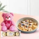 Send Baked Rasgulla (250g) from Balaram Mullick with a Teddy (6in) N Ferrero Rocher Chocolate Pack (4pcs) to wish your loved ones on their special days. (Only Available at Kolkata)
