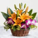 Beautiful Basket of Orange Lilies n Purple Orchids