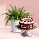 Send this Beautiful Gift of Indoor Air Purifier Plant with Cake to express your love and affection. This lovely arrangement of Bostern Fern Plant in Plastic Pot is presented with 1 Kg Black Forest Cake. Plant Type - Indoor - Air Purifying & Medical Benefit Plant Size - 3 to 7 inch Pot Size - 3 to 4 inch