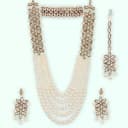 This gift box contains: - Gold Plated Bridal Long Necklace - A Choker - A Pair of Matching Earrings - A Maang Tikka Elevate your bridal look with this Beautiful Gold Plated Bridal Jewellery Set, a stunning ensemble designed to make you shine on your special day. The intricate craftsmanship of the gold-plated long necklace, choker, earrings, and maang tikka perfectly complement each other, creating a cohesive and elegant aesthetic. The set exudes a sense of timeless beauty and sophistication, making it the perfect choice for brides who want to make a statement as they walk down the aisle. Each piece is delicately crafted to enhance your natural beauty and add a touch of glamour to your bridal attire. Whether youre looking for the perfect finishing touch to your wedding ensemble or a memorable gift for a loved one, this Elegant Wedding Jewelry Set is sure to be cherished for years to come. Make your wedding day unforgettable with this captivating jewelry set that radiates grace and elegance.