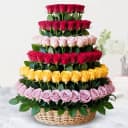 Show your intense love by sending this Beautiful Layering of 60 Mixed Roses in a Basket to the dearest people in your life and make them feel special. Product Details: Flowers: 60 Colorful Roses Gift Type: A Layered Basket Arrangement