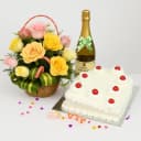 Convey your special wishes as you send online this Beautiful Mixed Roses Basket with White Forest Cake N Sparkling Juice. This flowers gift combo include: Details: Type of Flowers: Roses Flower Color: Assorted Type of Arrangement: Basket Type of Arrangement: Long Type of Cake: White Forest Cake Shape of Cake: Square Weight: 1/2kg Type of Juice: Sparkling Fruit Juice No of Bottles: 1 Alcohol Content: Nil Volume: 750 ml.