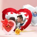 Bring the people you love closer to your heart by gifting this Beautiful Personalized Love Gift of a Heart Shape Personalized Cushion with a 3 pcs Heart Shape Handmade Chocolate n a Golden Rose loaded with your affection and fondness for them. Details Needed Please send a High Resolution Photo to designphotocake@gmail.com with your Order Number; within 1 hour of placing the order.