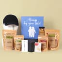 This is a gift of: - One Evil Eye Rakhi - Roasted Protein Mix (200gm) - Baked Mathi (165gm) - Roasted Chana Jor Garam (100gm) - Caramel Popcorn (80gm) - Ragi Bhujiya (65gm) - Black Cap (100gm) - Rakhi with Roli, Chawal Celebrate Raksha Bandhan with a gift hamper that brings together tradition, wellness, and style. The Evil Eye Rakhi stands as a symbol of protection and love, while a handpicked assortment of gourmet snacks ensures your brother enjoys every moment of the celebration. Packed with Roasted Protein Mix, Baked Mathi, Chana Jor Garam, and Ragi Bhujiya, this hamper offers a mix of health and flavor. Caramel Popcorn adds a hint of sweetness, and a sleek Black Cap adds a modern, wearable element to the experience. With Roli and Chawal included for the ritual, this hamper is a perfect expression of sibling love.