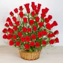 This flower basket has: - 51 Red Roses - A Basket Make your loved ones dreams come true with our Blissful Red Roses Basket.Overflowing with 51 breathtaking red roses, this arrangement is a symbol of love, desire, and everlasting devotion. The beautiful basket adds a touch of charm, creating a gift that is as enchanting as it is romantic. Surprise your special someone on their birthday, anniversary, or any day you want to show them how much they mean to you. Let the abundant red roses in this basket be a testament to your unwavering love.
