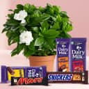 Unleash the fragrance of love with our Blooming Elegance, featuring a Blossom Filled Jasmine Plant accompanied by a selection of rich chocolates. This thoughtful gift comes in a stylish plastic pot, measuring between 3 to 7 inches in height, and serves as a vibrant reminder of affection. Included in the package is an enticing collection of chocolates—Mars, Snickers, Cadbury Dairy Milk Crackle, Cadbury Dairy Milk Fruit n Nut, and Cadbury Roast Almond. Perfect for any occasion, this combination is designed to evoke smiles and warmth, bringing joy to the heart of someone special.