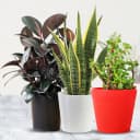 Order online this Botanical Gift Set of Three Air Purifying Planter and surprise your near and dear ones. This beautiful Gift Set is composed of Black Rubber Plant, Jade Plant and Snake Plant nicely presented in a Plastic Planter. Plant Type - Indoor - Air Purifying Plant Size - 3 to 7 inch Pot Size - 3 to 4 inch