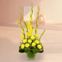 Show your love and appreciation with the Bright Sunshine Floral Delight! This captivating basket features a splendid mix of ten cheerful yellow carnations and six striking gladiolus, making it an ideal gift for any occasion. Radiating joy and positivity, this arrangement is perfect for conveying your sentiments of friendship, love, or simply to uplift someone's day. Its vibrant hues and artistic presentation ensure that your thoughtfulness is beautifully communicated.