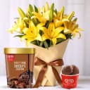 Bright Yellow Lilies Bouquet with Chocolate Ice-Cream from Kwality Walls