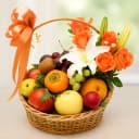 Carefully Selected Imported Fruits Basket with Orange Roses n White Lily