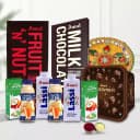 Pray for safety and well being of your loving family by sending this Celebration Hamper. This Gift Hamper has - a) 1 pc Amul Fruit n Nut Bar (100 gm) b) 1 pc Amul Milk Chocolate Bar (100 gm) c) 1 pc Amul Chocomins (250 gm) d) 2 pcs Amul Lassi e) 2 pcs Amul Kool f) 2 pcs Amul Butter Milk g) Designer Pooja Thali h) with Free Bhai Dooj Tika N Chawal.
