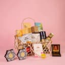 This gift consists of: - The Baklava Box Assorted Baklava (250g) - Davidoff Fine Aroma Instant Coffee (100g) - 4 Pcs Ferrero Rocher - Cookieman Chocochunk Cookies (120g) - The Daily Nut Co Healthy Mix (50g) - The Daily Nut Co Rose Almond Flakes (50g) - Iris Amogha Incense Cone - Mr Makhana Butter Tomato Flavour Makhana (20g) - 2 Pcs Wooden Tea Light Holder - Durga Charan Paduka Box - A Reusable Basket Dive into a celestial experience this Celestial Diwali Treats Hamper. Relish the exquisite flavors of assorted Baklava, complemented by the aromatic Davidoff coffee. Indulge in chocolatey Ferrero Rocher and crunchy cookies that melt in your mouth. Celebrate with healthy nut mixes and soothing incense, all packaged beautifully for an unforgettable festive moment.