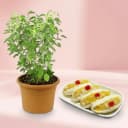 Deliver 6Pc Cham Cham from Karachi Sweet Mart with a Tulsi Plant to surprise on special occasion. (Only Available at Pune)