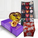 Adore your love on Valentines Day with this tempting gift of Charismatic Love Infinity Personalized Card with Heart Shape Sapphire Chocolate Box N a Golden Rose and beautify the sentiments of this occasion. This gift is a combination of a Love Infinity Personalized Explosion Card handmade with 5 Digital Photos N 3 Customized Messages and clubbed with a 3pcs Heart Shape Sapphire Hazelfills Chocolate Box N a Golden Rose. Details Needed:Please send 5 digital photo N 3 customized message with your Alpha-numeric order id at: designphotocake@gmail.com or Whatsapp at +91 9230721098..