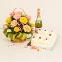 Charming Blossom Basket with Cake and Refreshment