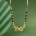 Celebrate elegance and transformation with this charming butterfly-inspired mangalsutra. Featuring a beautifully crafted gold-plated chain intertwined with classic black beads, it seamlessly blends traditional aesthetics with a modern flair. Sparkling crystals accentuate its beauty, making it perfect for both everyday wear and special gatherings. Its ultra-lightweight design promises comfort while radiating sophistication, making it an ideal choice for the modern woman who values both heritage and style.