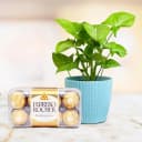 Discover a perfect blend of nature and indulgence with this delightful gift set! The charming Syngonium plant, housed in a stylish plastic pot, acts as an air-purifying companion that elevates any room's atmosphere. Accompanying it are 16 exquisite Ferrero Rocher chocolates, each a delicious treat that pairs beautifully with the plant’s refreshing elegance. With dimensions ranging from 3 to 7 inches for the Syngonium and a chic pot measuring 3 to 4 inches, this gift is perfect for any occasion, bringing joy and greenery to your loved ones.