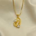 This stunning gold necklace features a beautifully crafted curved heart pendant, with elegant lines that exude charm. Adorned with two glittering white stones, it radiates a gentle shimmer and elegance. The intricate swirl design adds sophistication while ensuring a lightweight feel, making it a versatile piece for any occasion. Perfectly pairs with both traditional kurtis and modern dresses, this necklace is a stylish must-have for women and girls who appreciate contemporary jewelry.