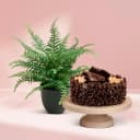 Immerse yourself in the refreshing aroma of nature while relishing a slice of delightful chocolate cake! This beautifully curated gift set features the stunning Bostern Fern, renowned for its air-cleaning properties and wellness benefits, ideal for enhancing any indoor setting. Each plant reaches an enchanting height of 3 to 7 inches, elegantly housed in a chic plastic pot measuring 3 to 4 inches. Paired with a sumptuous 1/2 kg chocolate cake, this gift promises to delight every sense. Perfect for birthdays, anniversaries, or simply to express your affection, this unique combination will undoubtedly leave a lasting impression.