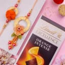 This is a gift of: - A Floral Bhaiya Bhabhi Rakhi Set by Rakhi Sutra (BBVL9716) - Lindt Excellence Dark Orange Intense Bar (100g) - Complimentary Roli Tika N Chawal - Complimentary Message Card with Free Rakhi Celebrate the cherished bond of Raksha Bandhan with elegance and warmth through this thoughtfully curated gift set. Featuring a graceful Floral Bhaiya Bhabhi Rakhi Set by Rakhi Sutra (BBVL9716), this combo beautifully blends traditional artistry with floral charm. Paired with the rich and zesty Lindt Excellence Dark Orange Intense Bar (100g), it adds a premium touch of indulgence to the festivities. Complete with complimentary Roli Tika, Chawal, and a heartfelt message card, this gift set is a perfect expression of love, tradition, and tasteful celebration.