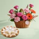 This gift combo includes: - 10 Mixed Flowers Arrangement (5 Roses + 3 Carnations + 2 Grbera) - Kaju Katli (500 Gms) This charming gift combo features a delightful arrangement of 10 mixed flowers, including 5 roses, 3 carnations, and 2 gerberas, paired with 500g of delectable Kaju Katli. The mixed flower arrangement adds a burst of color and beauty, making it an ideal gift for any occasion, from birthdays to housewarmings. The Kaju Katli, made from premium cashews and infused with cardamom, offers a rich, nutty sweetness that complements the freshness of the flowers beautifully. This thoughtful combination is perfect for expressing heartfelt sentiments and creating cherished memories, bringing together nature’s beauty and culinary delight.