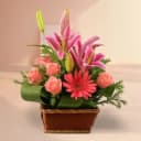 Celebrate your special moments with the Cherished Moments in a Floral Basket, an exquisite arrangement that captures the essence of love and beauty. Featuring a stunning collection of pink lilies, elegant roses, and vivacious gerberas, this basket is a perfect gesture for any occasion. Each flower signifies a deep affection, turning typical days into unforgettable experiences. Whether you’re marking a milestone or simply expressing your feelings, this floral creation radiates joy and warmth, ensuring smiles abound.
