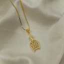 This beautifully crafted gold pendant necklace features a blossoming floral drop, exuding sophistication. Adorned with delicate white gemstones, it reflects light in a captivating manner, creating an enchanting sparkle. The elegantly shaped petals provide a graceful look, making it an ideal choice for daily wear or special occasions. A versatile accessory that complements both contemporary and classic styles.