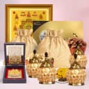 This Diwali Gift Box has: - Ferrero Rocher Moments 16 Pcs - Cashew In Designer Jute Potli -100 gms - Almond In Designer Jute Potli -100 gms - Gold Coin Shaped Chocolate - Shri Shri Lakshmi Yantram In A Frame - Ganesh Lakshmi Charan Paduka Prayer Box - Designer Crystal Led Light - Set of 4 Feel great when you gift this Choco Nutty Charm Diwali Elegance Hamper and bring joy into the lives of the people you love on this Diwali.