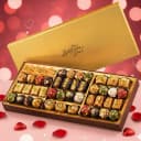 Indulge in our Chocolate Bliss collection, featuring a sumptuous 1kg of gourmet chocolate baklava, beautifully presented in a stylish red tin adorned with a delicate ribbon. Each bite combines traditional baklava layers with decadent chocolate, perfect for elevating celebrations.