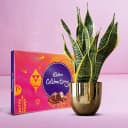 Elevate your gifting game with this enchanting combo that marries the richness of chocolate with the tranquility of nature. The Cadbury Celebration Pack, weighing 126 grams, is a delectable assortment designed to satisfy any chocolate lover's cravings. Accompanying this sweet indulgence is a stylish Milt Sansevieria Plant in a chic plastic pot, offering a perfect blend of vibrancy and style to any space. Gift this delightful package to someone special and witness their joy unfold with every nibble of chocolate and every breath of fresh air from the greenery. Ideal for birthdays, anniversaries, or simply to show you care.