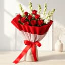 This bouquet is made of: - 20 Red Roses - 5 White Tuberose Convey your heartfelt wishes by gifting this Classic Congratulations Bouquet of 20 Red Roses n 5 White Tuberose with Tissue Wrapping to the people dearest to you.
