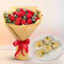 This gift combo includes: - 8 Red Roses Tissue Wrapped Bouquet - Abar Khabo Sandesh (10 Pcs) Make memories sweeter with our Classic Roses N Traditional Sandesh Duo! This enchanting gift features a stunning bouquet of eight red roses, elegantly draped in soft tissue that adds a touch of charm. Roses are the ultimate expression of love, making this gift ideal for anniversaries, milestones, or just because. Paired with these lovely blooms are ten pieces of delectable Abar Khabo Sandesh, a traditional Bengali delicacy that balances sweetness with a unique texture. A delightful way to nourish the heart and taste buds, this combo is sure to make any occasion unforgettable!
