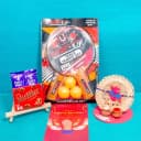 Product Details: - Gear Up Table Tennis Set - A Cadbury Nutties Pack - Cadbury Dairy Milk Chocolate Bar (13.2 g x 2 pcs) - Spiderman Rakhi - Complimentary Rakhi with Message Card - Free Roli Tika N Chawal included. (Rakhi Design Code: SAJSPM2405) Celebrate the bond of love and fun this Raksha Bandhan with a delightful combo that brings joy to all ages! This specially curated gift set includes a premium Gear Up Table Tennis Set, perfect for adding excitement to sibling game nights. Indulge your sweet tooth with a delicious Cadbury Nutties Pack and two Cadbury Dairy Milk Chocolate Bars (13.2 g each), offering a rich, chocolaty treat. The vibrant Spiderman Rakhi adds a playful touch that will surely light up your brother’s face, while the included complimentary Rakhi message card lets you express your heartfelt wishes. Complete with traditional roli, tika, and chawal, this Rakhi set is ready to deliver love, fun, and sweetness in a single package. Rakhi Design Code: SAJSPM2405.