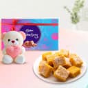 Buy Coconut Burfi (500 Gms) with a 6in Teddy N Cadbury Celebration Chocolate Pack (126g) N deliver on the same day to make your dearest persons happy. (Only Available at Delhi)