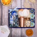 This diwali gift box contains: - Irish Potpourri - Copper Glass Set of 2 pcs - Mix Dry Fruit (100gm) - Coaster Set of 2 Pcs - Mud Diya - Reusable Basket Celebrate elegance with this unique gift box, which beautifully blends tradition and modernity. The Irish potpourri fills any room with a soothing fragrance, while the copper glass set of 2 adds a touch of opulence to daily hydration rituals. Savor the richness of mixed dry fruits (100g), paired perfectly with the artisanal coaster set of 2 pieces. Light up your space with the warmth of a mud diya, symbolizing light and positivity. Presented in a stylish reusable basket, this gift brings an essence of sophistication, making it perfect for festive gifting or housewarming celebrations.